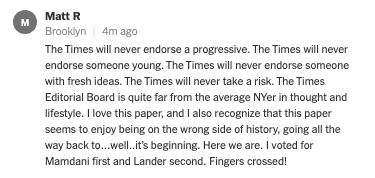 Mamdani and Brad Lander announced their x-endorsements via this ad: