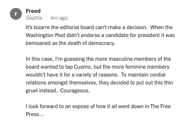 In a world and a nation that is crying to end the gerontocracy of our leadership, that wants a new day, that wants to see a new generation ascend it is unconscionable to send Andrew Cuomo to Gracie Mansion once again.