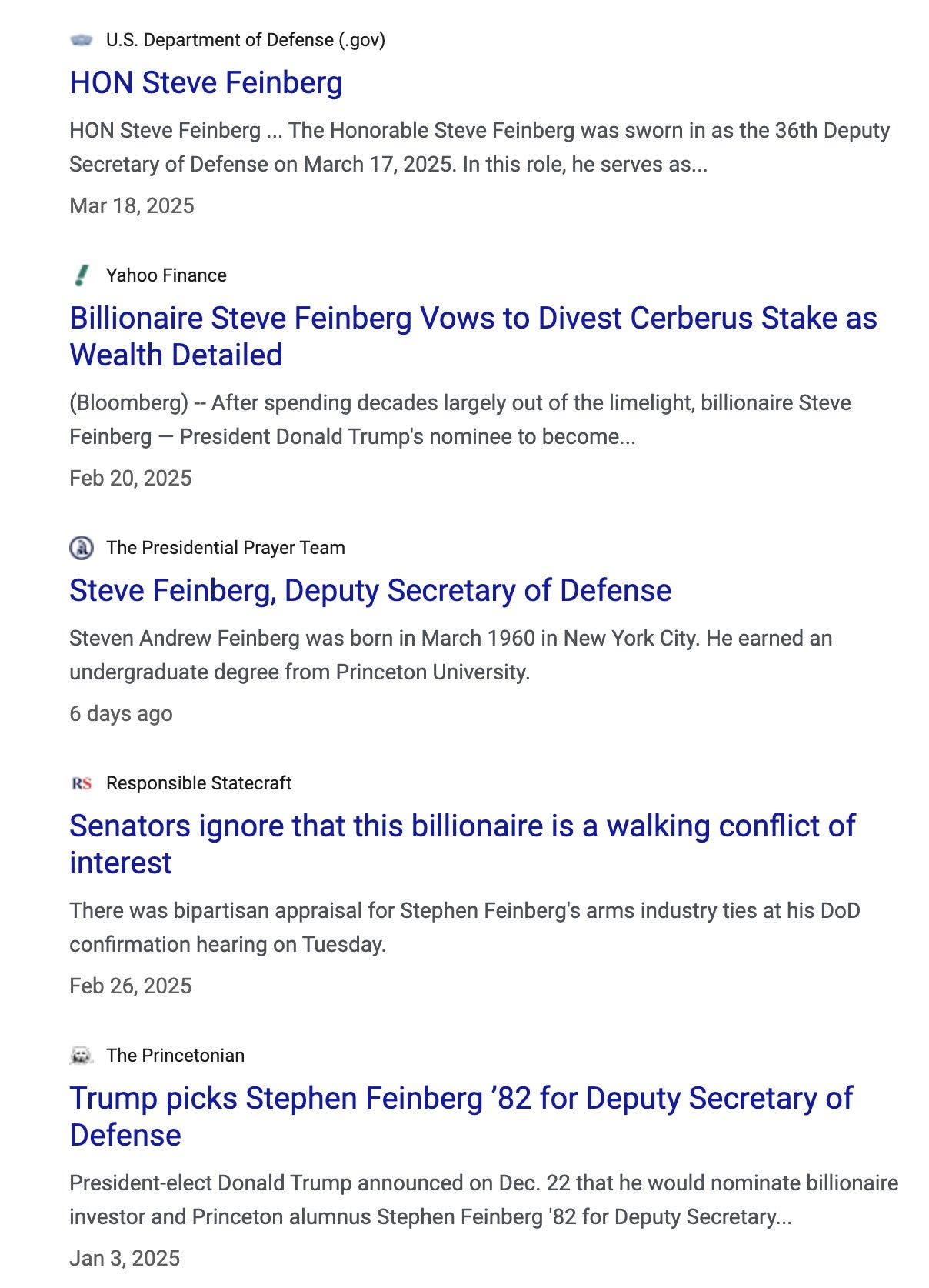 “So, like Pete Hegseth, head of the Pentagon, he’s kind of a Fox and Friends, you know, he’s a TV show host. And the. The Deputy Director of the Pentagon, Steve Feinberg of Cerberus Capital, is most likely the person actually running the Pentagon, not Hegseth, in my opinion.