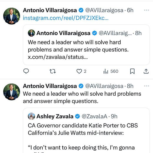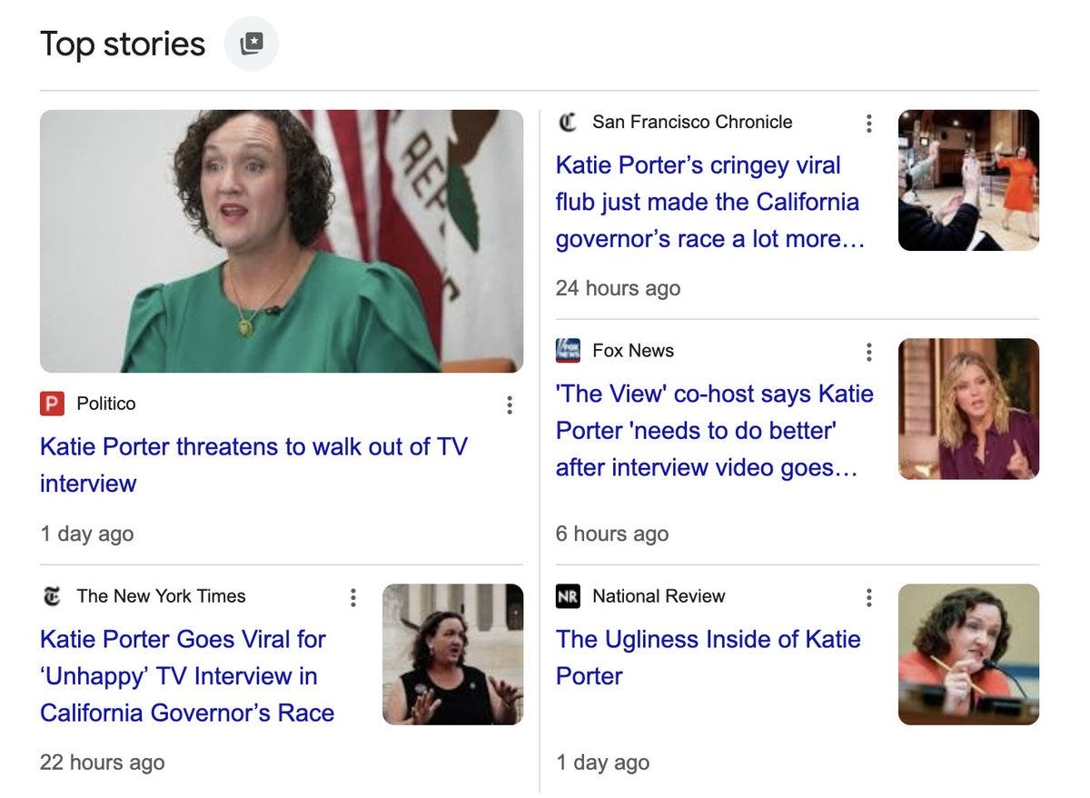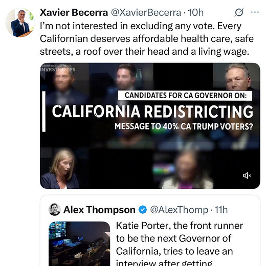 So when Porter emerged as the front-runner after Kamala Harris elected not to run, the California Democratic establishment was not happy, as shown by Politico’s piece titled “The case against Katie Porter’s inevitability”: