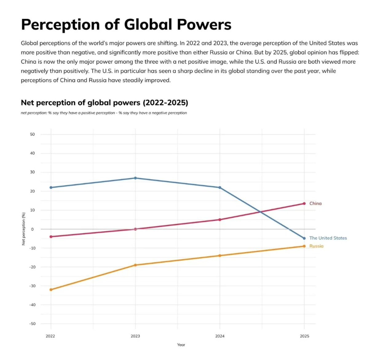 Perhaps that’s why America’s global standing has eroded so badly in recent years, per a recent survey of 111,273 people in 100 countries by the Alliance of Democracies Foundation.