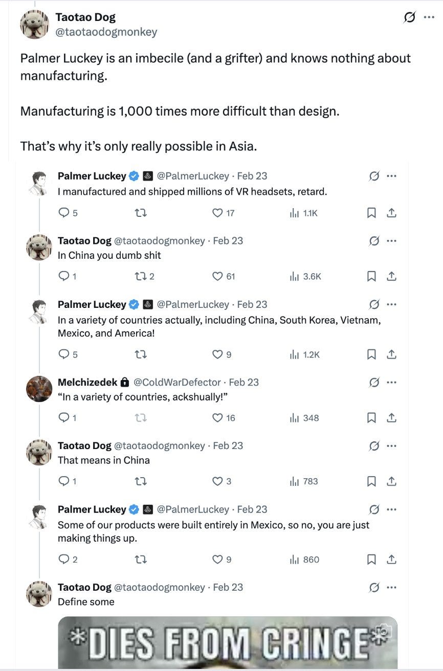 I have no way to confirm any of those numbers, but I would certainly not be surprised if Palmer Luckey is selling overpriced and under-powered tech to the Taiwanese.