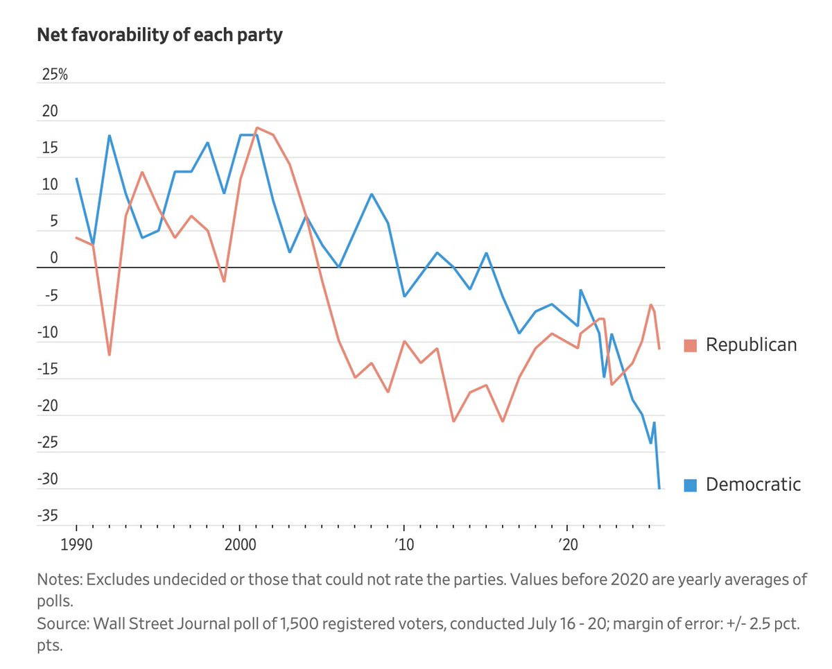 Democrats have been hoping that a voter backlash against the president will be powerful enough to restore their majority in the House in next year’s midterm elections, much as it did during Trump’s first term. But the Journal poll shows that the party hasn’t yet accomplished a needed first step in that plan: persuading voters they can do a better job than Trump’s party.