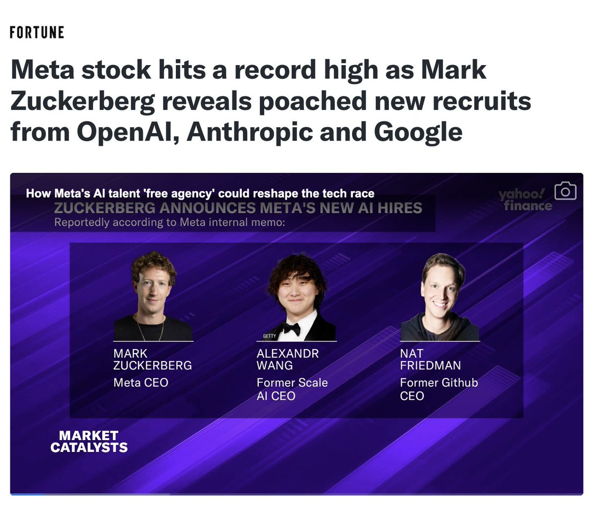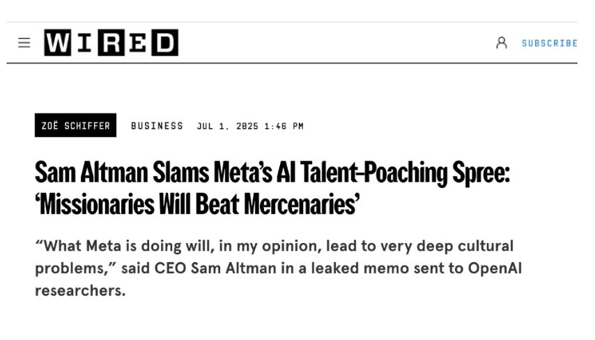 Mark Zuckerberg paid $14.3 billion for Scale AI, an AI data company, as a means of hiring its CEO Alexandr Wang to run his “superintelligence” team, has been offering random OpenAI employees $100 million to join Meta, thought about buying both AI search company Perplexity and generative video company Runway and even tried to buy OpenAI co-founder Ilya Sutskever’s pre-product “$32bn valuation” non-company Safe Superintelligence, settling instead on hiring its CEO Daniel Gross and buying his venture fund for some fucking reason.